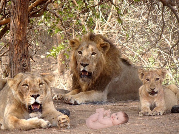 11. అడవిలో సింహాల మధ్య జన్మించిన బిడ్డ
