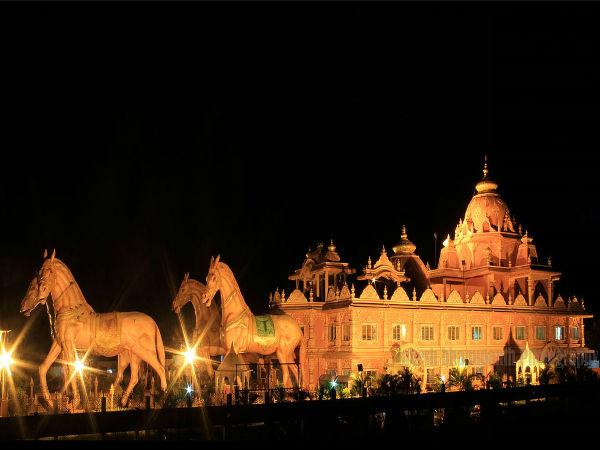 గుజరాత్ గంగాపుర్ సూరత్ - బర్దోలి రోడ్ వద్ద భక్తి వేదాంత రాజవిద్యాలయ ఇస్కాన్ ఆలయం.