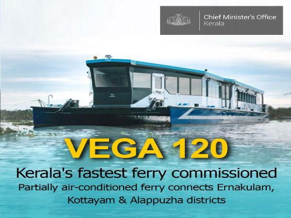 కేరళ ప్రభుత్వం వేగ 120 పేరుతో అత్యంత వేగంగా పర్యటించే స్పీడ్ బోట్ను లాంచ్ చేసింది. ఈ స్పీడ్బోట్ ఎర్నాకులం, కొట్టాయం, అళప్పీ మీదుగా ప్రయాణం చేస్తుంది. కేరళ ముఖ్యమంత్రి కార్యాలయం ఈ విషయాన్ని ట్వీట్ చేసింది.