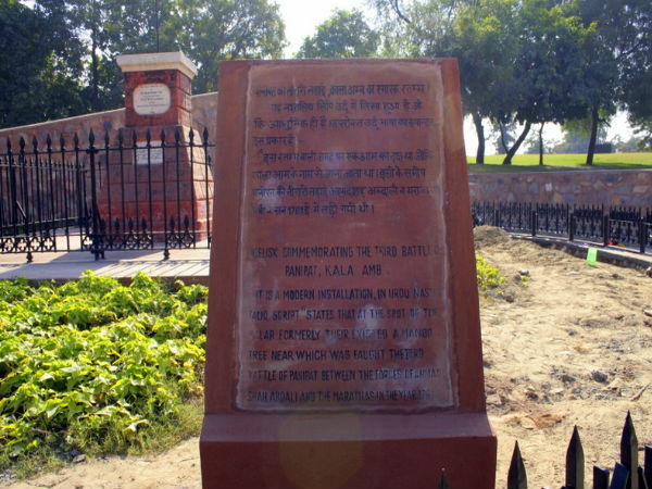 కాలా అమ్బ్ మూడవ పానిపట్టు యుద్ధంలో అహ్మద్ షా తో పోరాడిన మరాఠాలు జ్ఞాపకర్దంగా నిర్మించారు. యుద్ధం అనేది ఏ ప్రదేశంలో జరగాలో ఇక్కడ ఉన్న మామిడి చెట్టు ద్వారా పాయింట్ పెట్టడం జరిగింది. ఈ ప్రదేశం ఇనుప కడ్డీ తో ఇటుక స్థూపాన్ని కలిగి ఉంది.