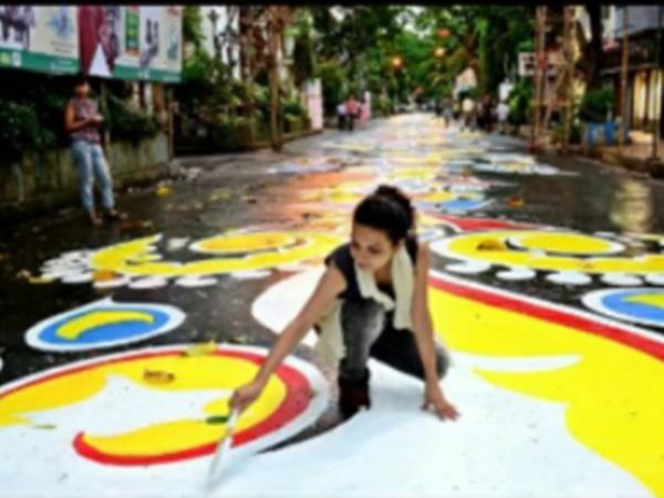 బెంగాలీ భాషను రంగోలిలో వుపయోగించారు.